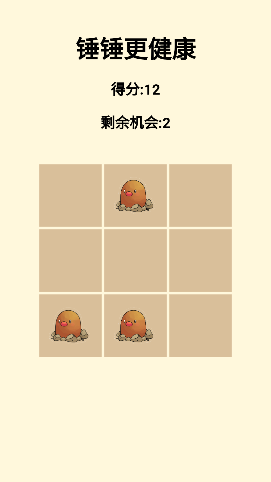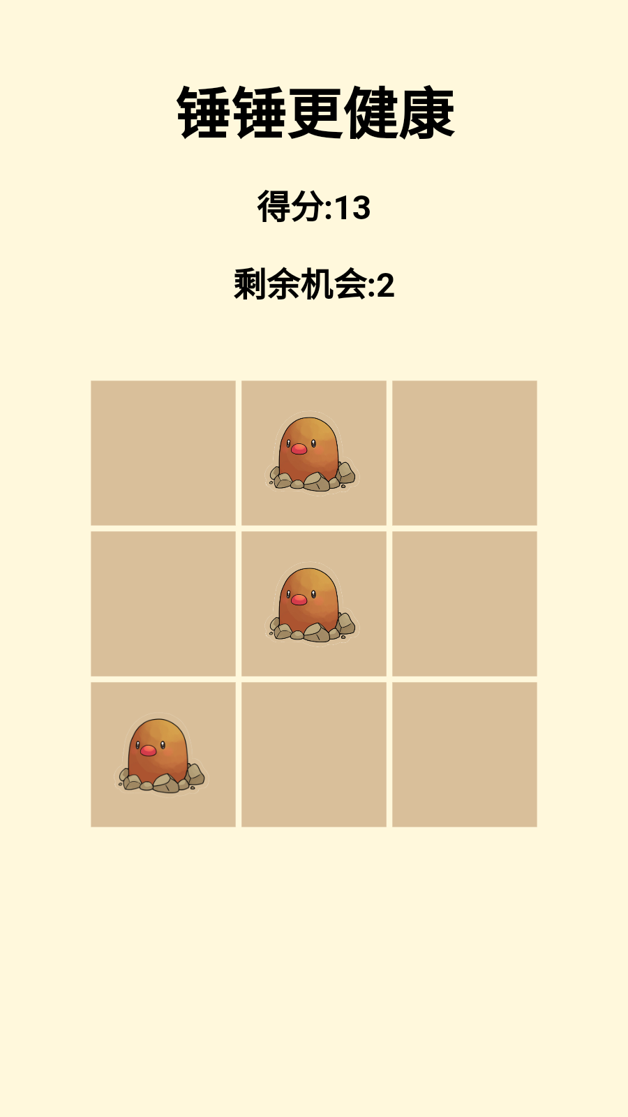 简介锤锤更健康游戏简介用木锤击打坚果,冒出来的坚果全部击打掉! 分类: ...